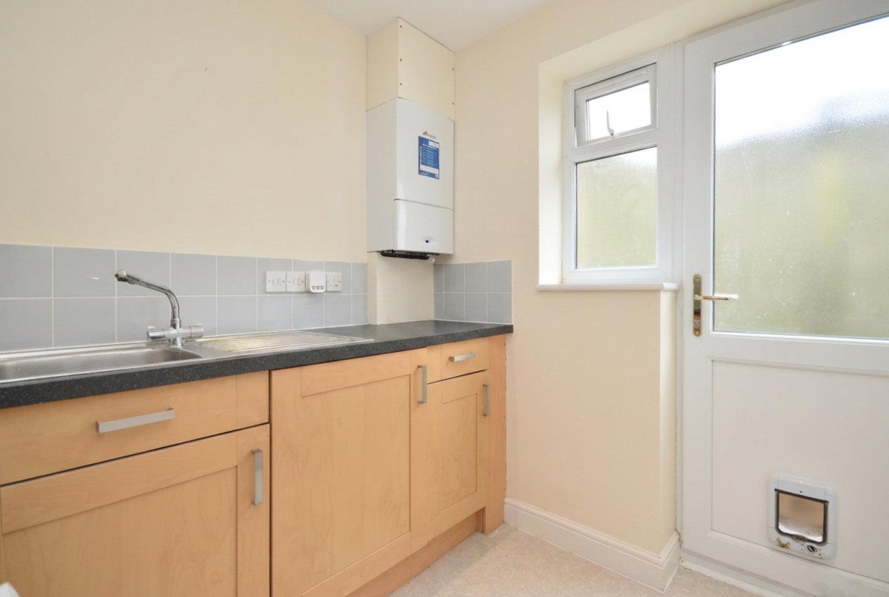 uPVC double glazed obscure door to side aspect, uPVC double glazed obscure window to side, range of wall units, worktop over, sink drainer unit, mixer taps over, integrated washing machine, single paneled radiator, spotlights,