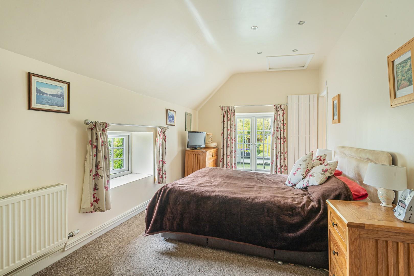 uPVC double glazed low level window to front aspect, Velux window to rear aspect enjoying views across the garden, exposed beams, inset spots, double radiator, storage cupboards, space for freestanding wardrobe, inset spots.