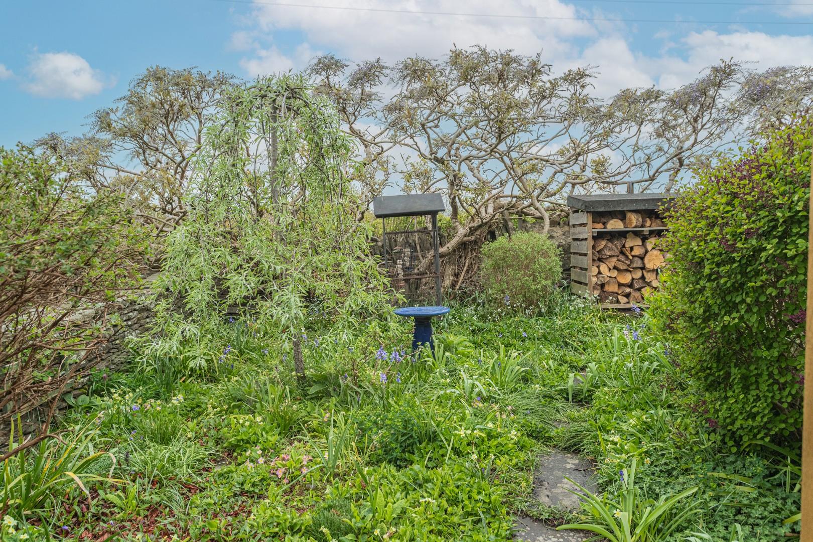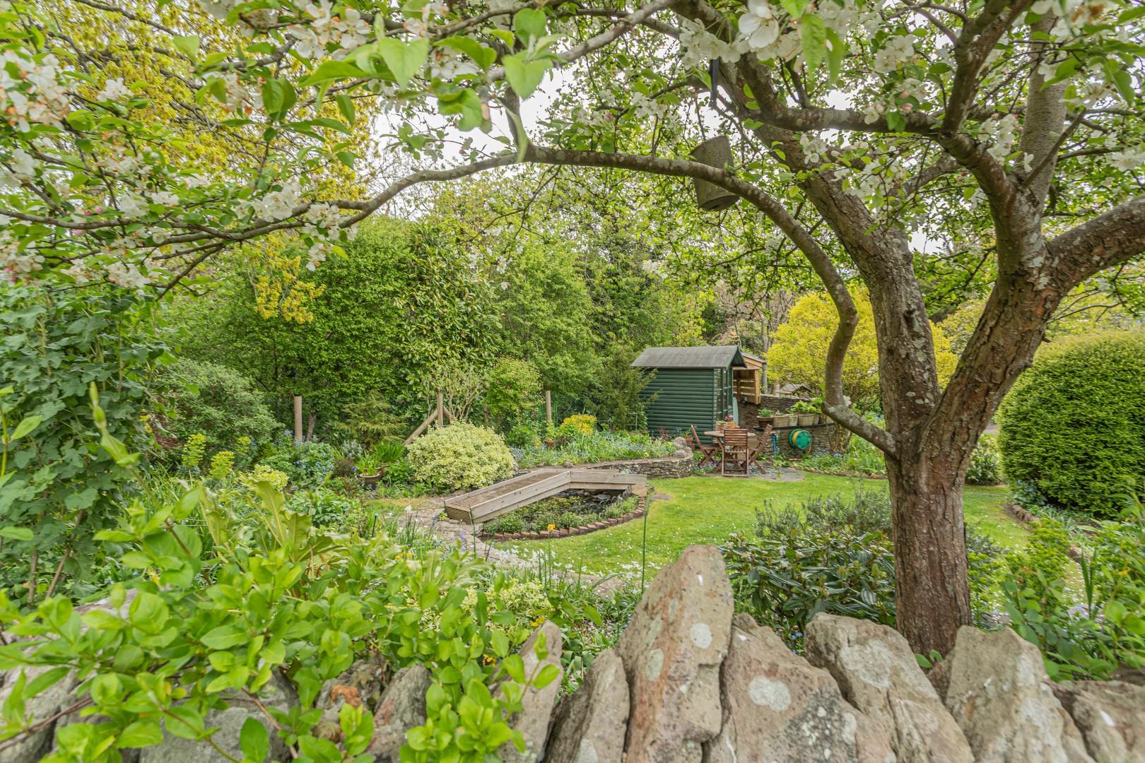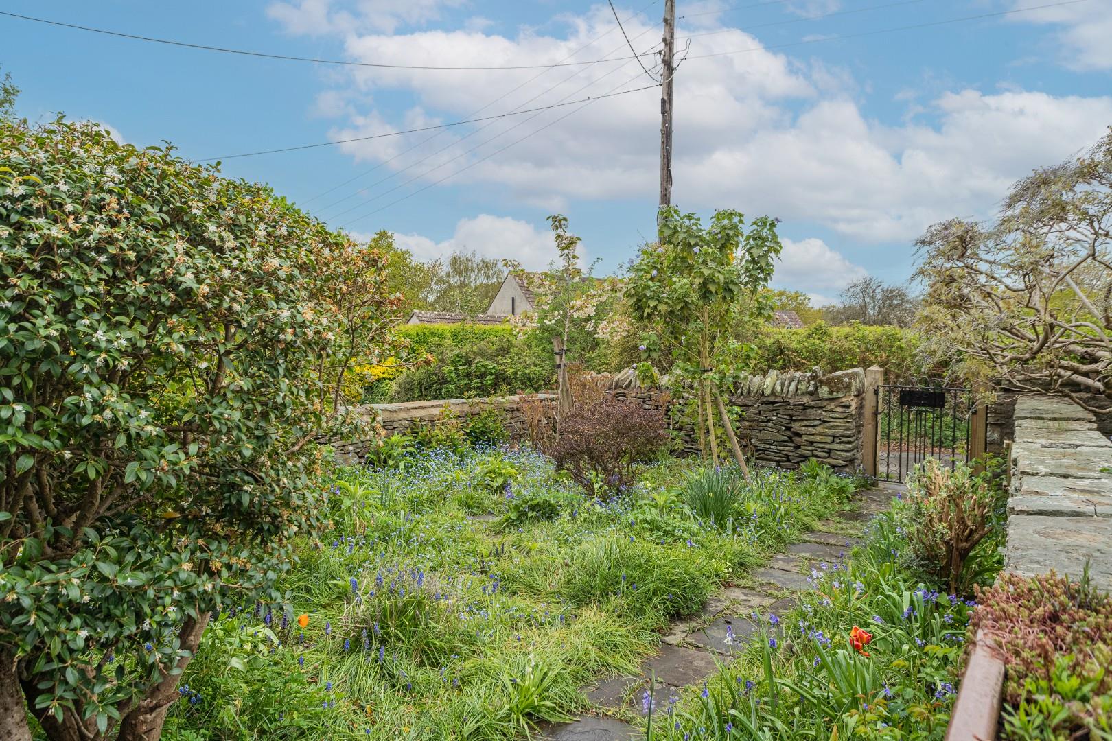 The front of the property has a grey slate driveway providing off street parking and access to the garage via a metal up and over door, there is boundary stone walling with cock and hen finish, a flagstone path leads to the front door and covered porch (currently used for storing wood). The front gardens contain a mixture of spring bulbs, ground cover, shrubs and a beautiful established wisteria. A pedestrian gate gives access to the rear garden which has a range of different areas with well stocked mature deep planted borders containing herbaceous perennials, spring bulbs, climbers, roses and mature trees, there is a lawn area with a mature garden pond with bridge over. There is a wooden seating area in the corner of the garden with a summerhouse with access to a boiler room. A courtyard area is situated immediately adjacent to the cottage which is ideal for garden furniture with mature climbing plants. A further pedestrian gate leads down to the remainder of the garden with an area for compost and an open ended dry store for wood, a number of polytunnels, greenhouses and vegetable gardens with a variety of fruit trees and a garden shed. The gardens are enclosed by a mixture of wooden fencing, evergreen clipped laurel and walls with cock and hen finish.