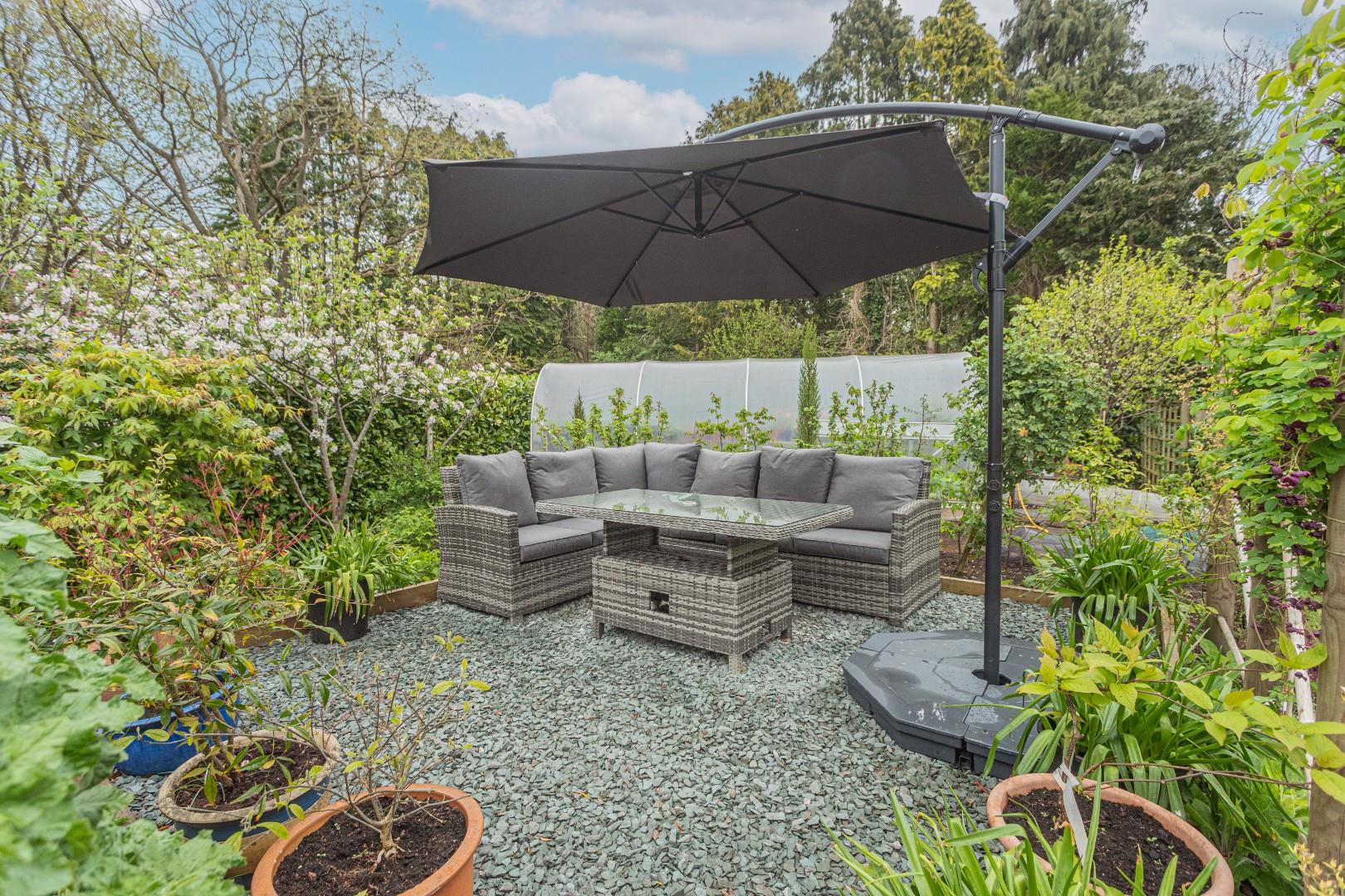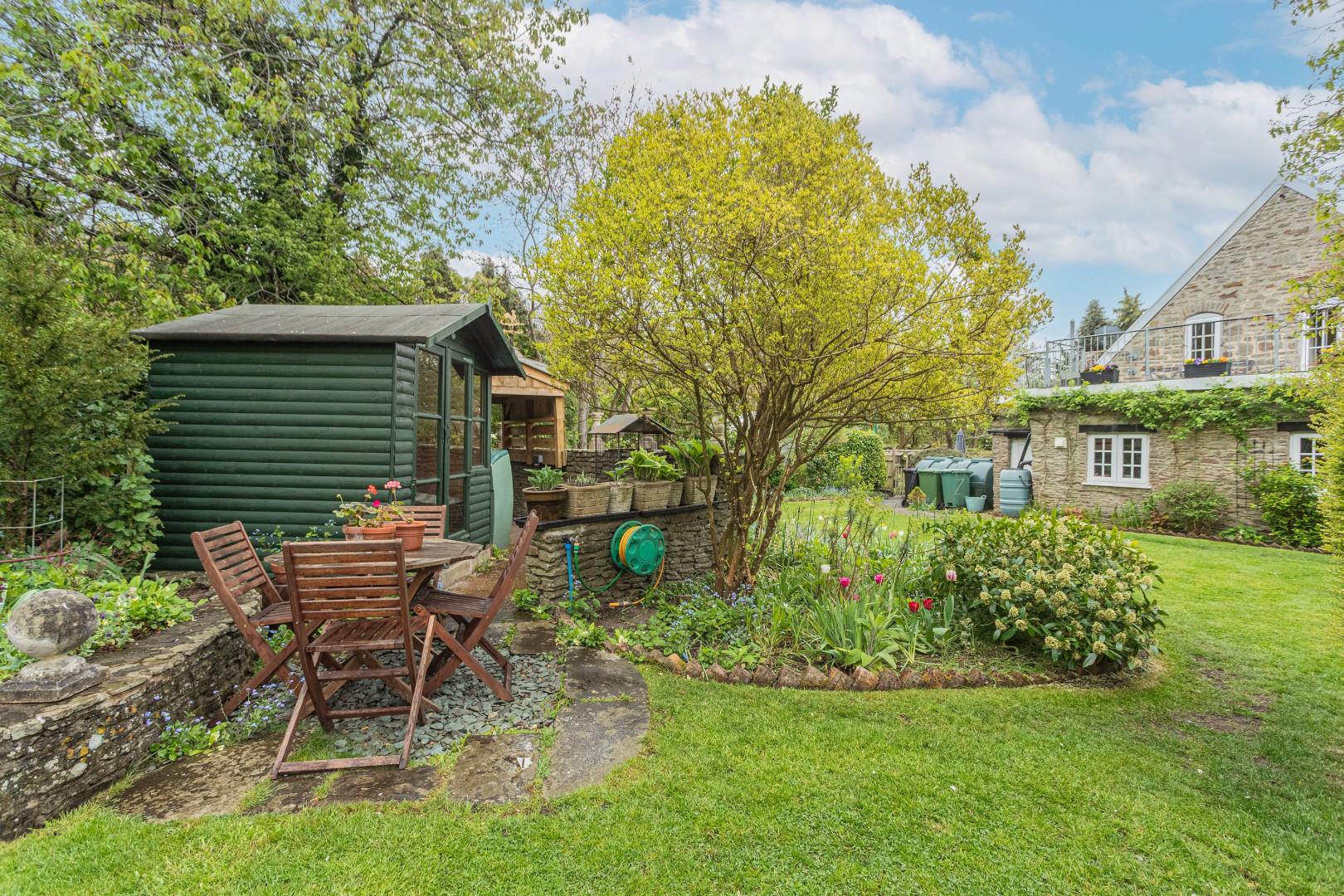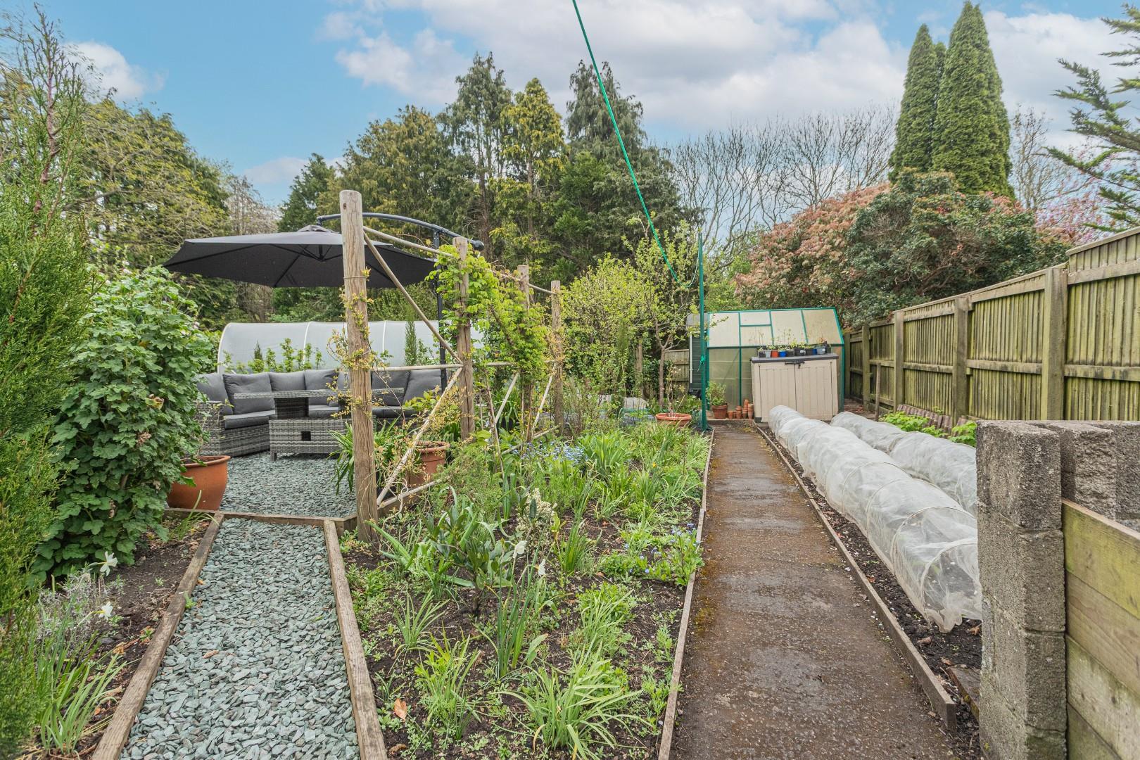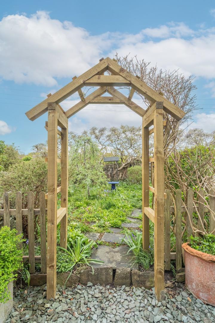 The front of the property has a grey slate driveway providing off street parking and access to the garage via a metal up and over door, there is boundary stone walling with cock and hen finish, a flagstone path leads to the front door and covered porch (currently used for storing wood). The front gardens contain a mixture of spring bulbs, ground cover, shrubs and a beautiful established wisteria. A pedestrian gate gives access to the rear garden which has a range of different areas with well stocked mature deep planted borders containing herbaceous perennials, spring bulbs, climbers, roses and mature trees, there is a lawn area with a mature garden pond with bridge over. There is a wooden seating area in the corner of the garden with a summerhouse with access to a boiler room. A courtyard area is situated immediately adjacent to the cottage which is ideal for garden furniture with mature climbing plants. A further pedestrian gate leads down to the remainder of the garden with an area for compost and an open ended dry store for wood, a number of polytunnels, greenhouses and vegetable gardens with a variety of fruit trees and a garden shed. The gardens are enclosed by a mixture of wooden fencing, evergreen clipped laurel and walls with cock and hen finish.