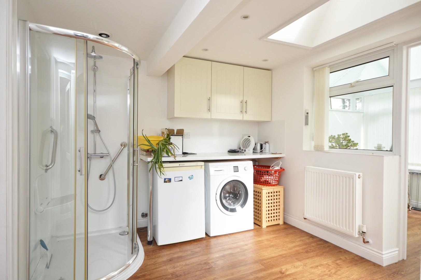uPVC double glazed obscured door to rear garden, uPVC double glazed window to rear aspect, door to sun room, Velux window to side aspect, space and plumbing for washing machine, double radiator, space for under unit fridge freezer, shower cubicle with rainfall shower over, door to