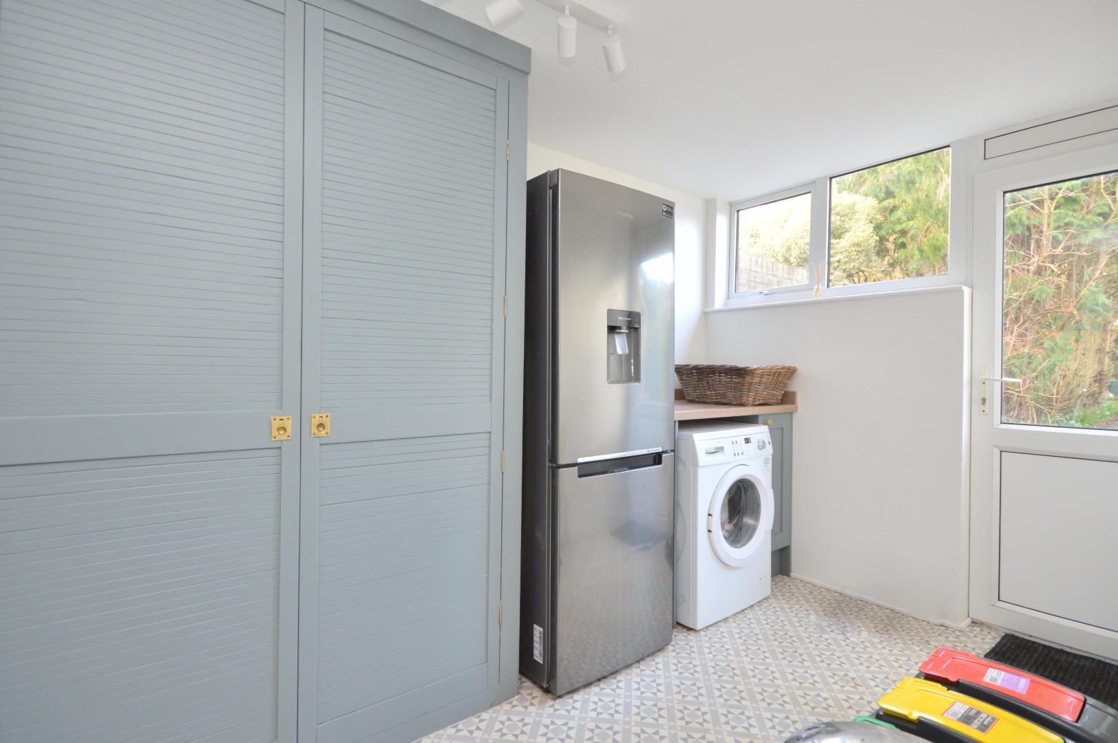 uPVC double glazed door to rear garden, uPVC double glazed window to rear aspect, space and plumbing for washing machine, space for freestanding fridge freezer, storage cupboards with fitted shelving, single radiator, door to