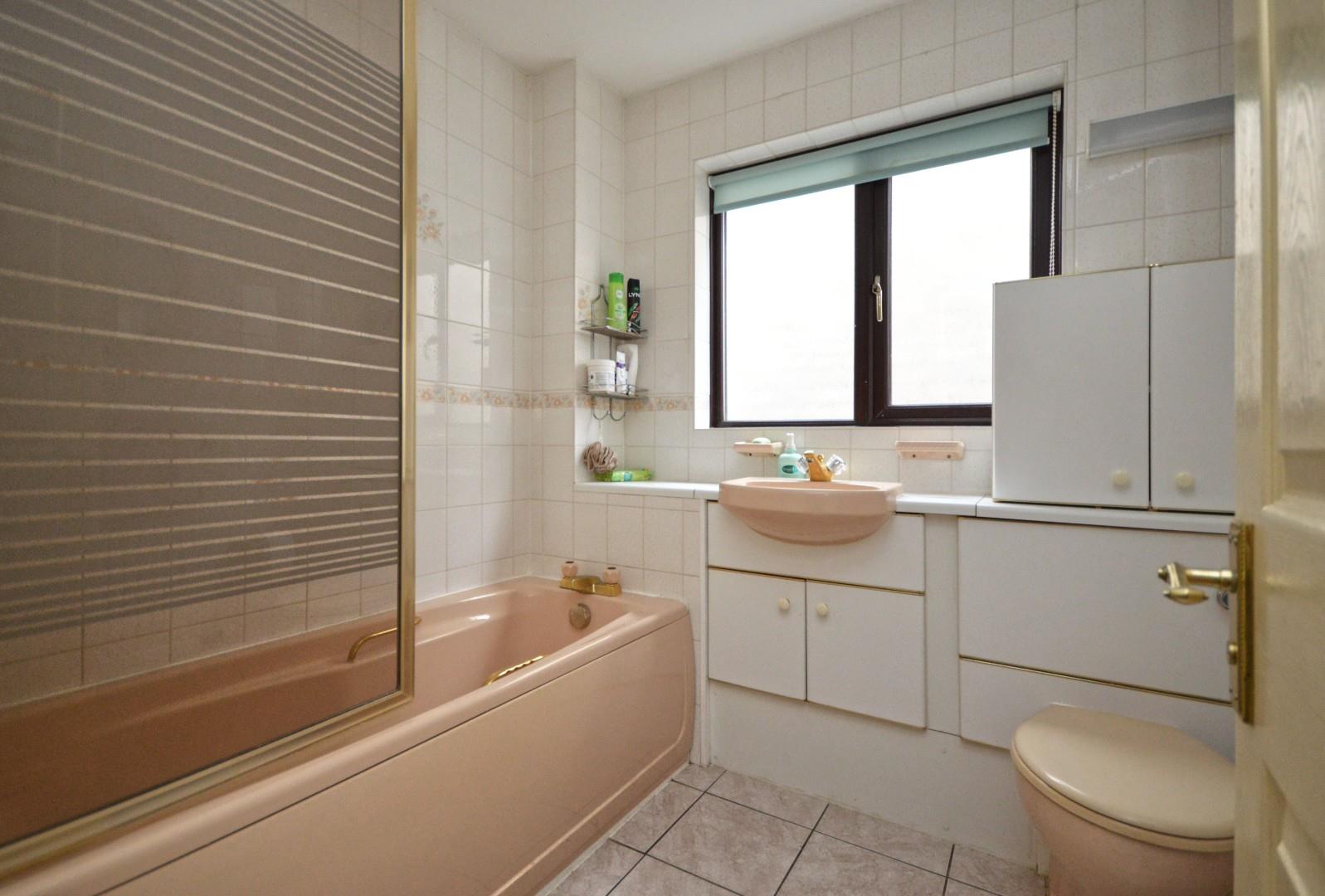 Obscured double glazed window to side aspect, suite comprising panelled bath, w/c and wash hand basin.