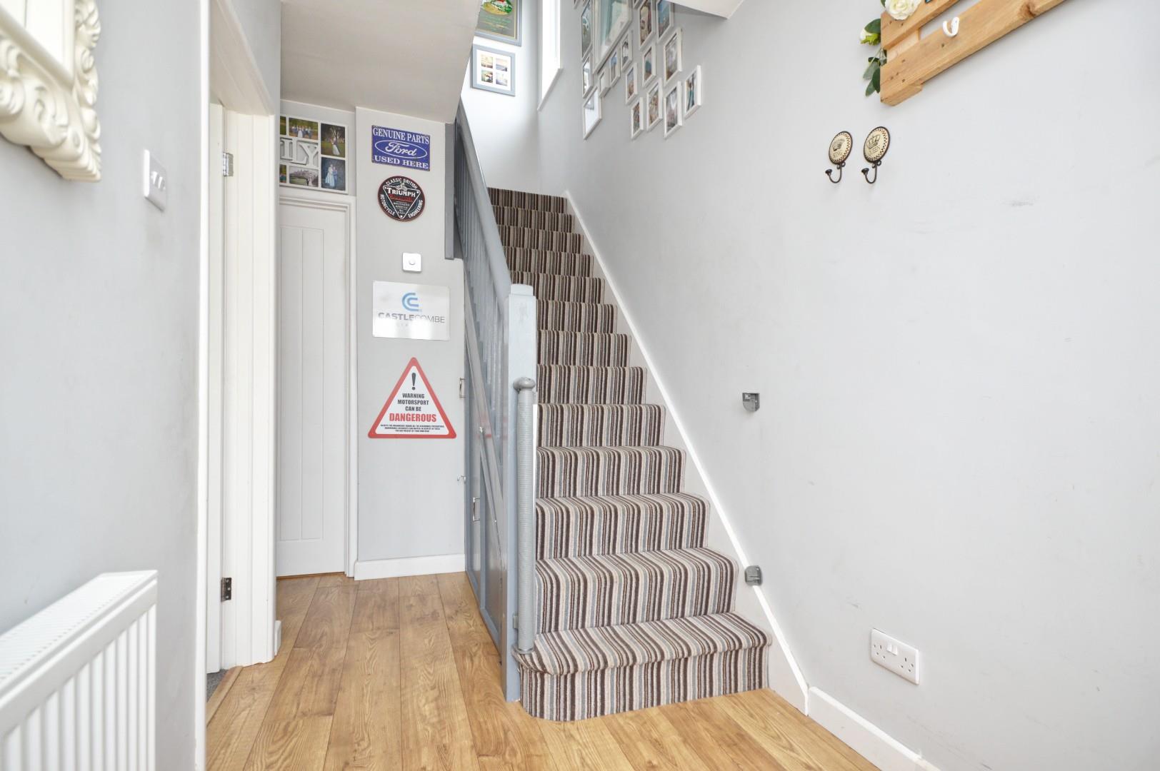 Single radiator, stairs rising to first floor, understairs storage cupboard, doors to