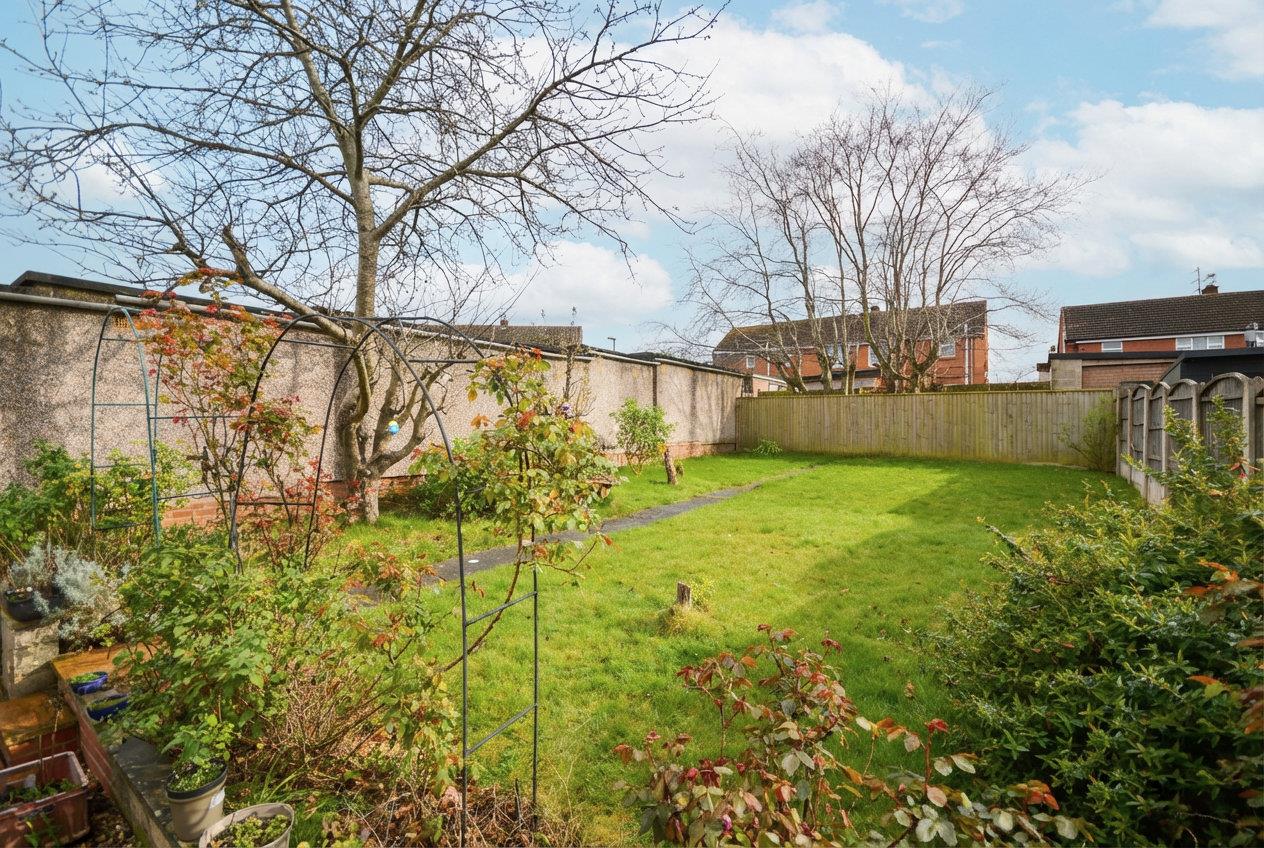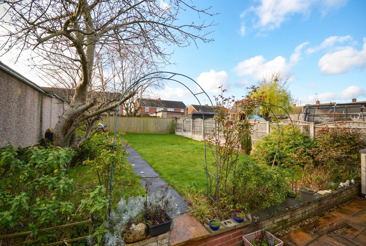The rear garden has a patio area immediately adjoining the property ideal for garden furniture, steps lead up to the remainder of the garden which is laid to lawn with a pathway leading to the top of the garden. There is a mature fruit tree and some shrubs. The rear garden is enclosed by wooden fencing with concrete posts and gravel boards and featheredge fencing. The front of the property is laid to concrete providing ample off street parking.