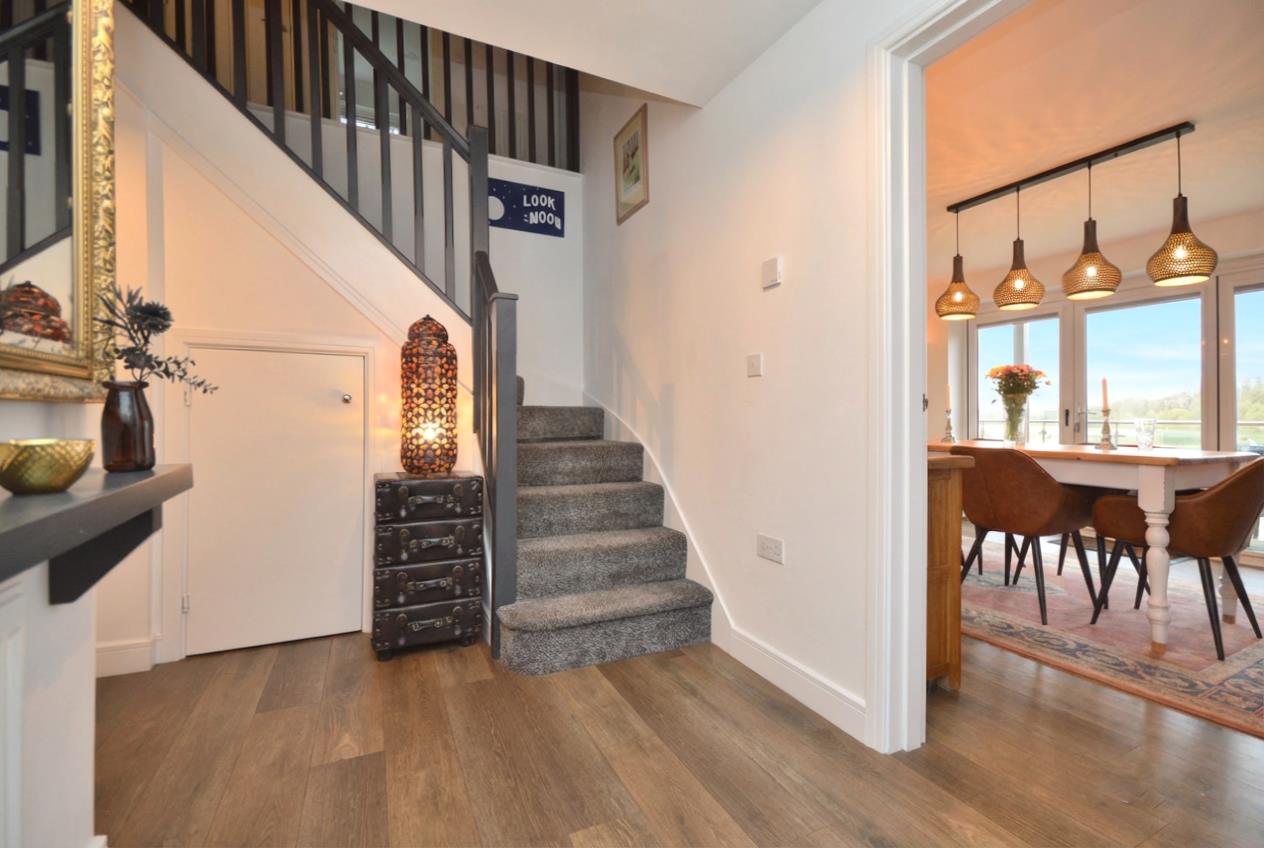 Aluminum coated bi-folding doors to the terrace and rear garden enjoying amazing views across "The Hams", uPVC double glazed window to rear aspect, two double radiators, a stunning kitchen comprising a range of wall and floor units with Quartz worksurfaces over, 1 1/4 bowl sink unit with mixer taps over, Quartz splash backs and window sills, 5 ring AEG gas hob, with contemporary light and fan over, full sized dishwasher, AEG oven and grill, integrated fridge and freezer, pull out larder cupboard, door to