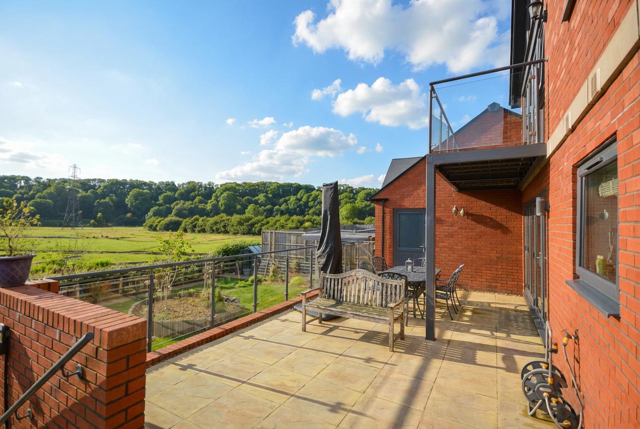 Glass balustrade, ideal for table and chairs, enjoys views over local countryside.
