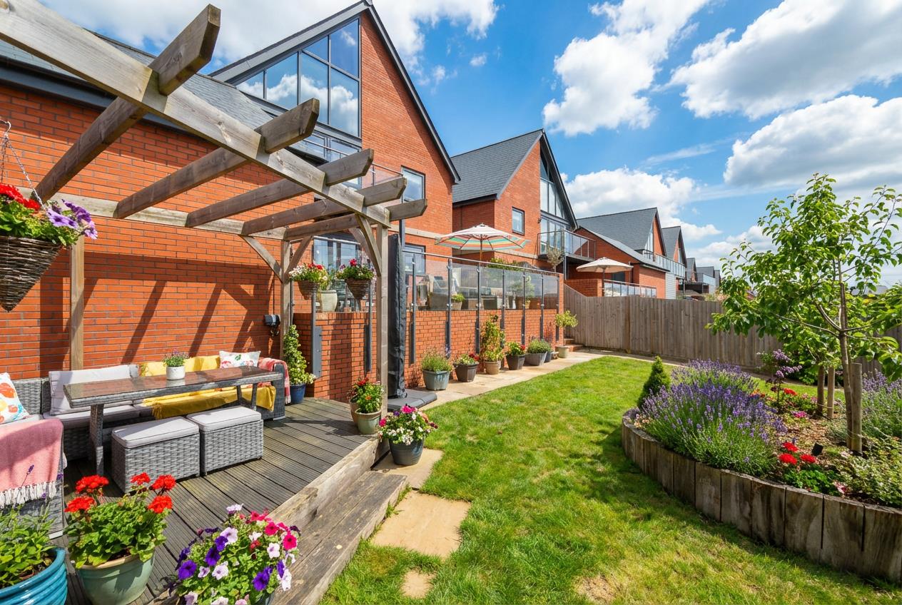 The front of the property has clipped shrubbery with a pathway leading to the front door, there are a few recently planted trees. A driveway provides ample off street parking and access to the double garage. The rear garden has patio terrace with glass balustrade immediately adjacent to the property ideal for al fresco dining, steps lead down to the remainder of the garden which is laid mainly to lawn with Indian sandstone paving around the perimeter. There is a mulched border containing some plants and shrubs. There is also a raised railway sleeper border in the corner containing shrubs along with a corner decking area with lighting and a gazebo over ideal for further garden furniture. There is a central railway sleeper border with freshly planted trees. There is a range of garden lights situated throughout the borders, steps and decking areas. A greenhouse is also included in the sale. There is pedestrian access to the side of the property where a log store is situated with light and a pedestrian gate provides access to the front. The rear garden is enclosed mainly by featheredge fencing and post and rail with a clipped evergreen Laurel hedge adding a degree of privacy.