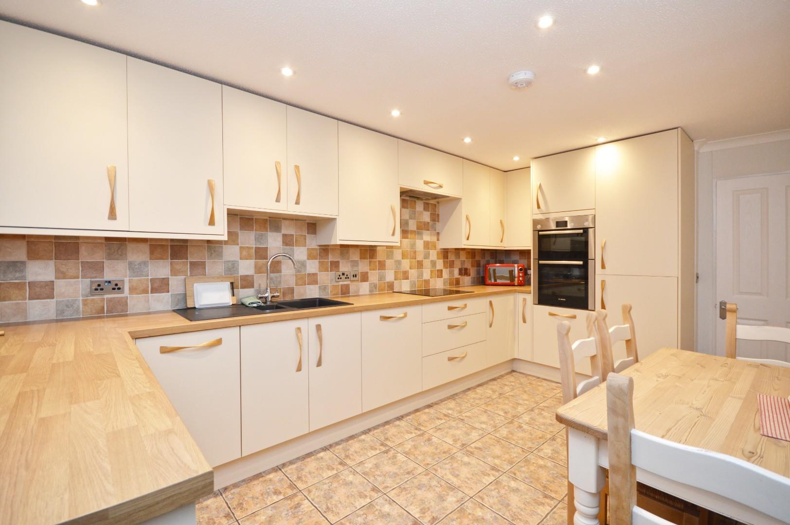 uPVC double glazed pedestrian door to rear garden, uPVC double glazed window to rear aspect, a recently refitted kitchen comprising a generous range of wall and floor units with worksurface over, 1 1/4 bowl sink drainer unit with chrome mixer taps over, tiled splash backs, integrated slimline dishwasher, 4 ring Bosch electric hob with extractor over, Bosch oven and grill, integrated fridge freezer, tiled flooring, electric underfloor heating, inset spots, coving, contemporary wall mounted radiator.
