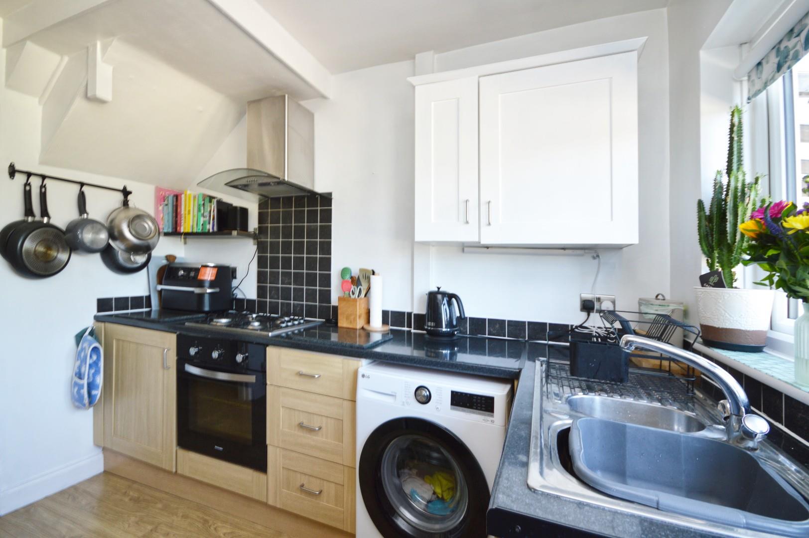 uPVC double glazed window to rear aspect, uPVC double glazed door opening to rear garden, a range of wall and floor units with worksurface over, integrated oven and gas hob with extractor over, space and plumbing for washing machine, space for freestanding fridge freezer, wood effect flooring, single radiator.