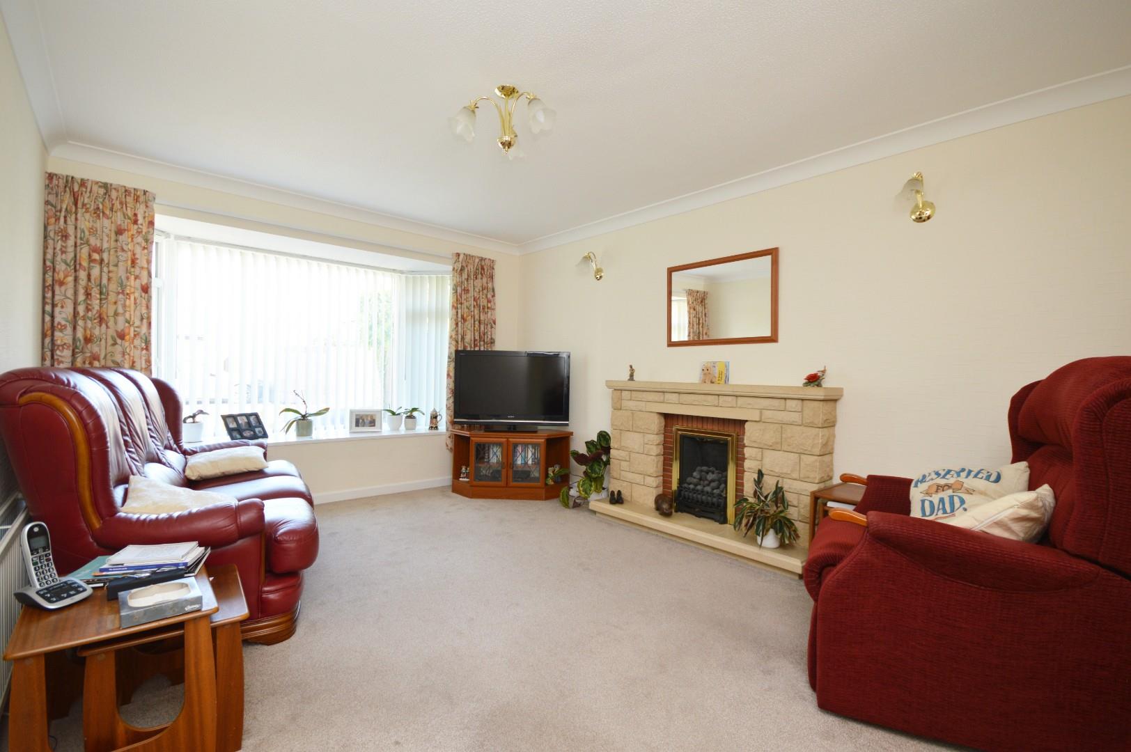 uPVC double glazed feature bay window to front aspect, coving, wall lights, double radiator, living flame gas fire with stone surround and mantle over, archway leading to