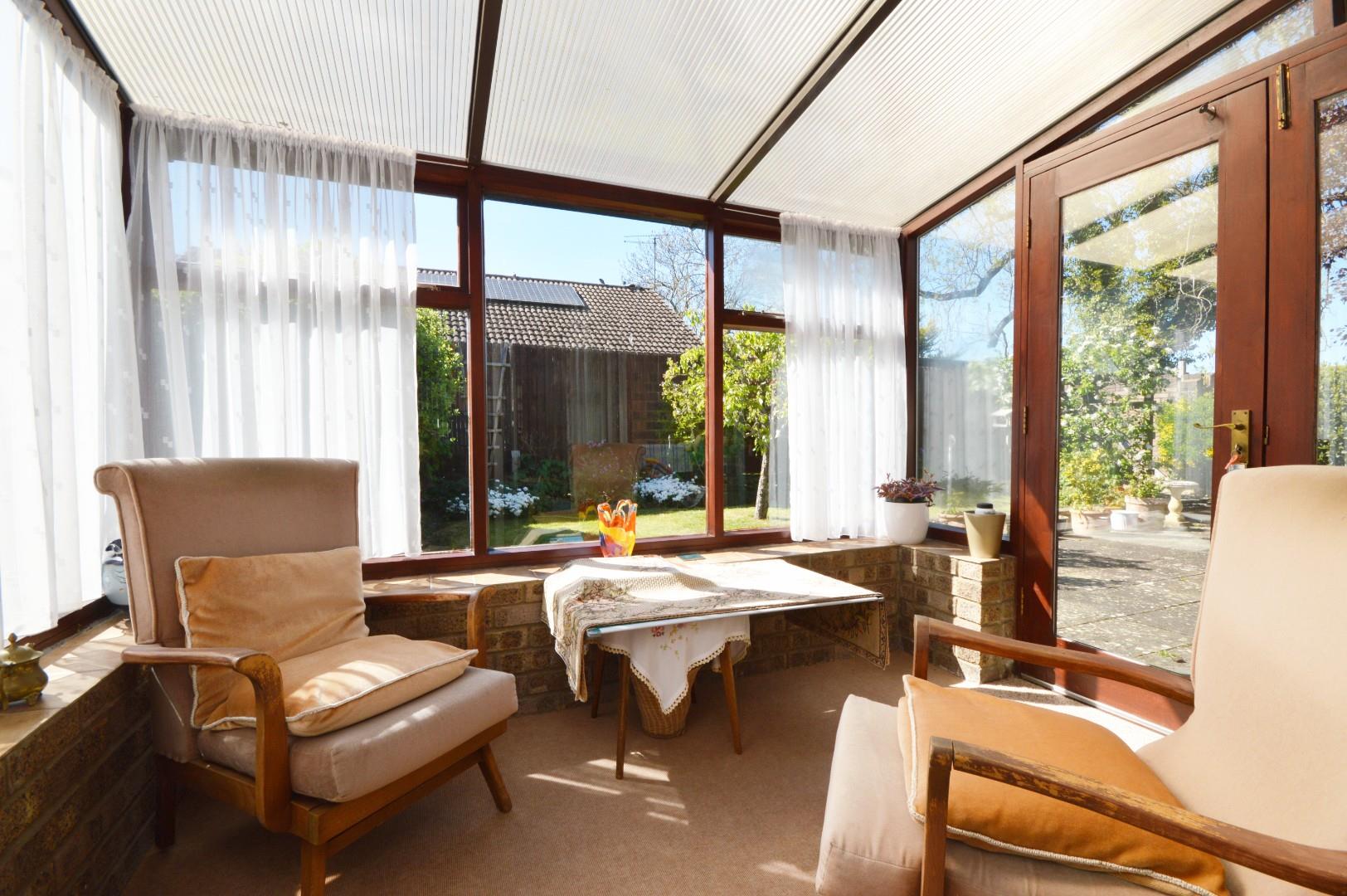 Windows to side aspect, polycarbonate roof, light, double doors to rear garden,
