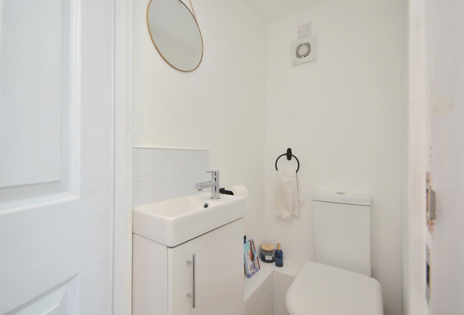Wash handbasin mixer taps over, storage below, close coupled WC, extractor fan.