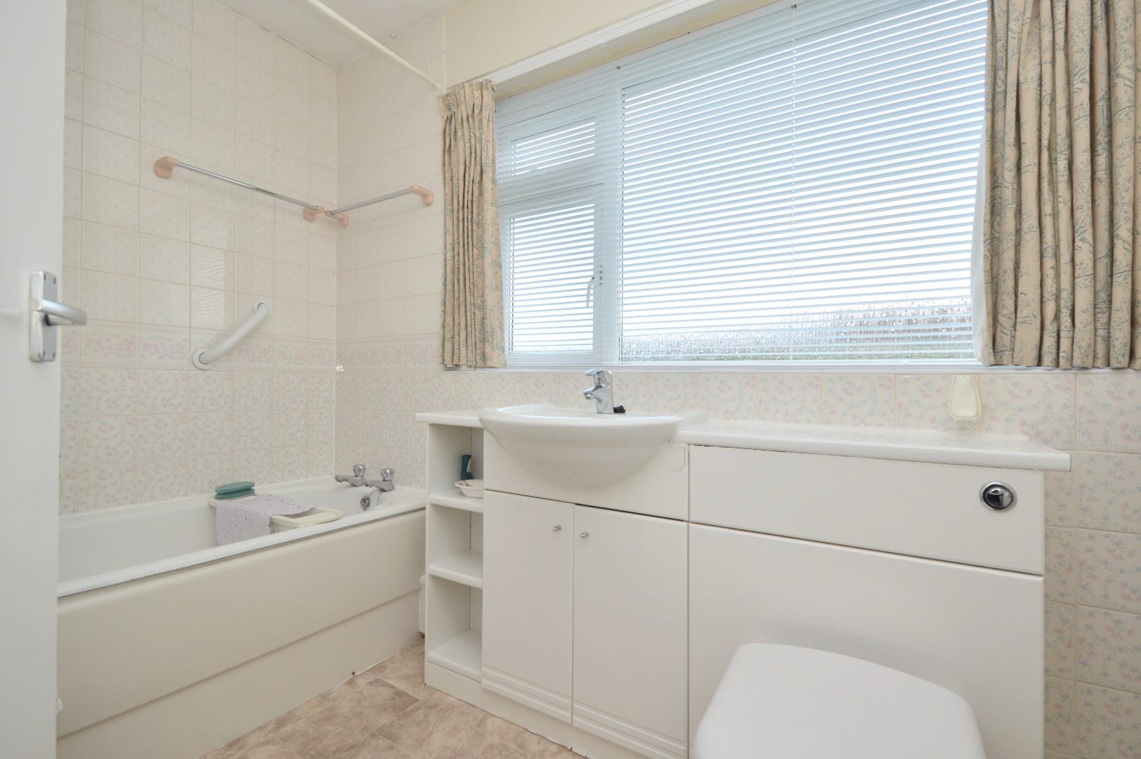 uPVC double glazed obscured window to front aspect, fitted bath with shower mixer over, close coupled w/c, wash hand basin with mixer taps over and storage below, single radiator.