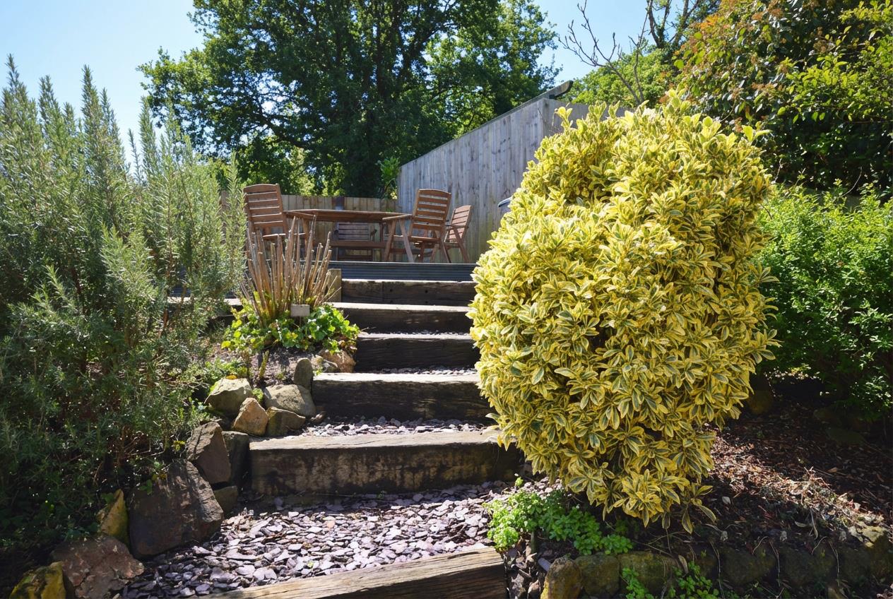 The front of the property is accessed via a wrought iron gate onto a driveway providing ample off street parking and access to the garage and games room. There is a large expanse of patio and wooden decking with lighting providing ample space for outside entertaining enjoying views across to the Viaduct and church. There is a POD point fitted for EV cars, steps rise up to the garden via a wrought iron gate onto terraced mulched borders with railway sleeper borders containing a mixture of herbaceous perennials, plants and shrubs. The air source heat pump is located in this area. At the top of the garden is a further wooden terrace ideal for further garden furniture with an area of lawn. The remainder is laid to plum slate for ease of maintenance. The rear garden is enclosed by wooden featheredge fencing.