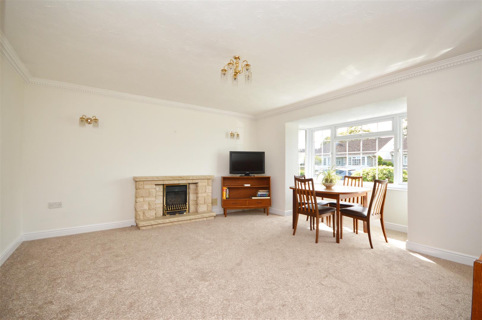 uPVC double glazed feature bay window to front aspect, double radiator, living flame gas fire with stone effect surround and mantel over.