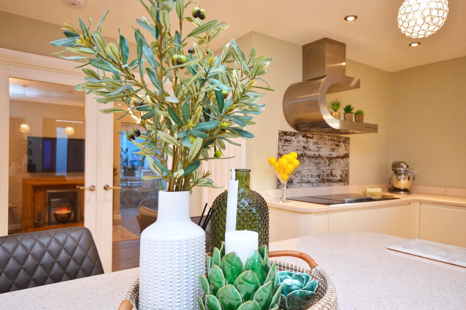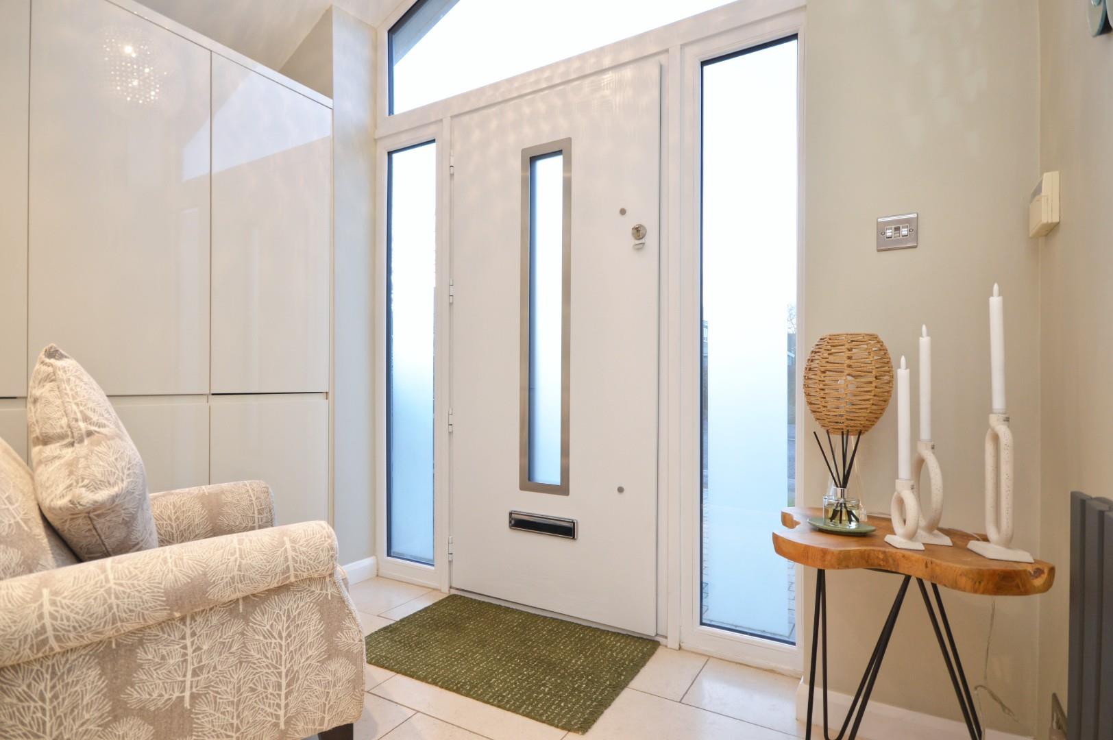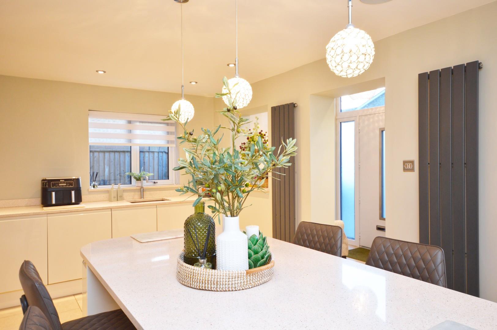 UPVC double glazed windows to side and front aspect, a refitted kitchen with a range of wall and floor units and Quartz work surface over, sink unit with Quooker hot water tap over, integrated fridge / freezer, integrated Neff dishwasher, integrated Neff hide and slide cooker with additional microwave combination and plate warmer, integrated Neff induction hob with a Teriyaki Grill and contemporary extractor fan over, island with Quartz work surface over and storage beneath, breakfast bar, tiled flooring with underfloor heating, spot lights and fitted Sonos ceiling speakers, two separate radiators, door to cloakroom, internal doors leading to sitting room