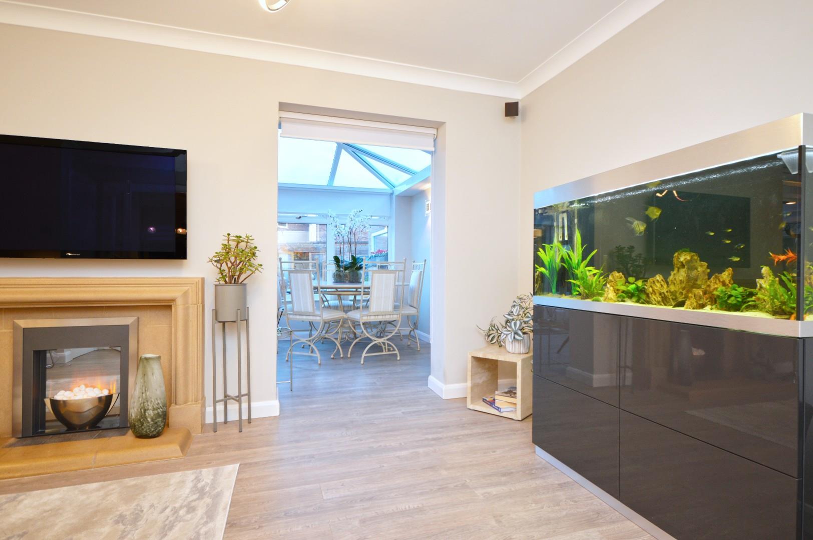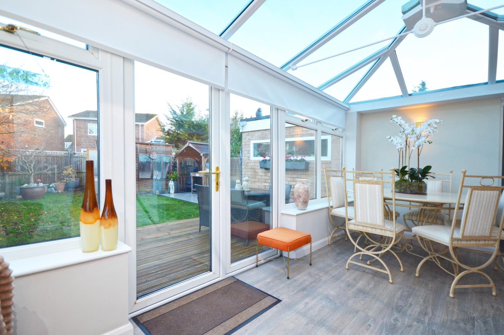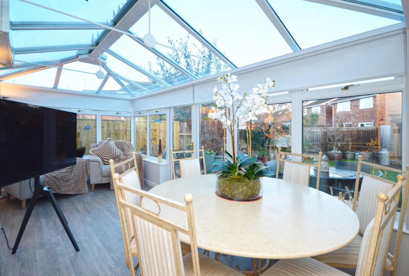 A selection of UPVC double glazed windows to side and rear, UPVC double glazed patio doors opening to rear garden, reflective glass and self cleaning roof, single paneled radiator, wooden effect laminate flooring, door to utility room