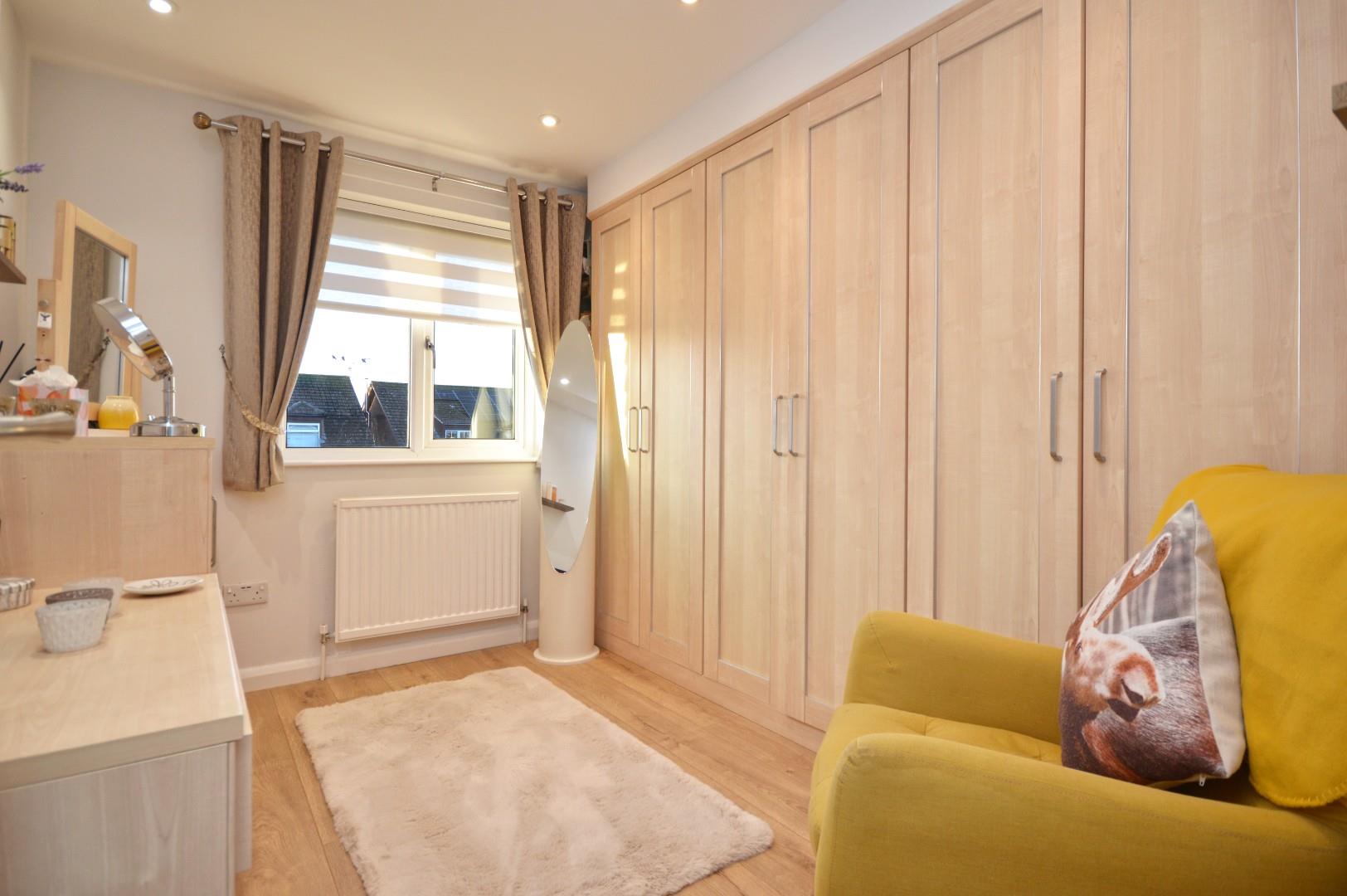 UPVC double glazed window to front aspect, single radiator, fitted wardrobe space, spot lights