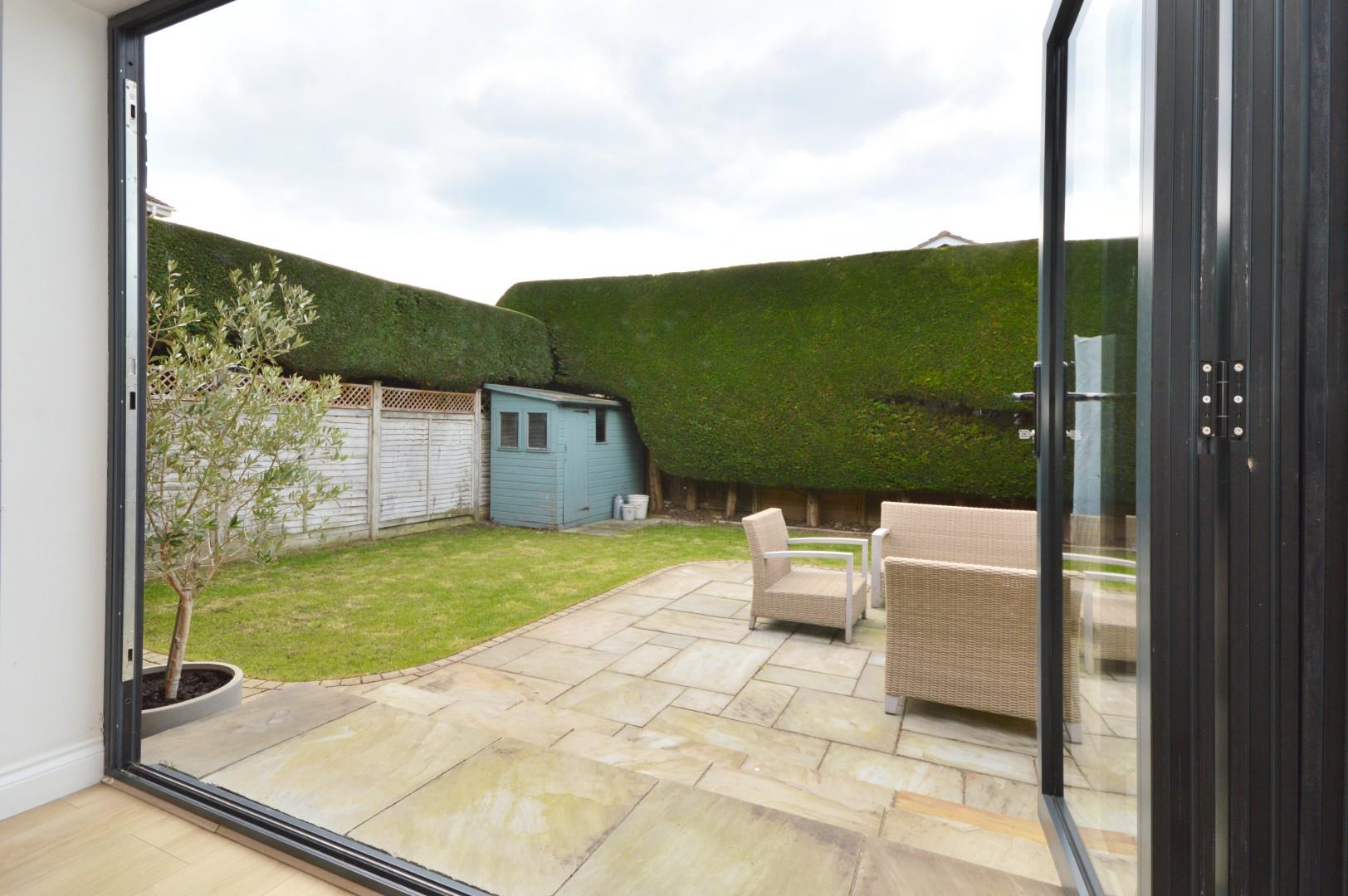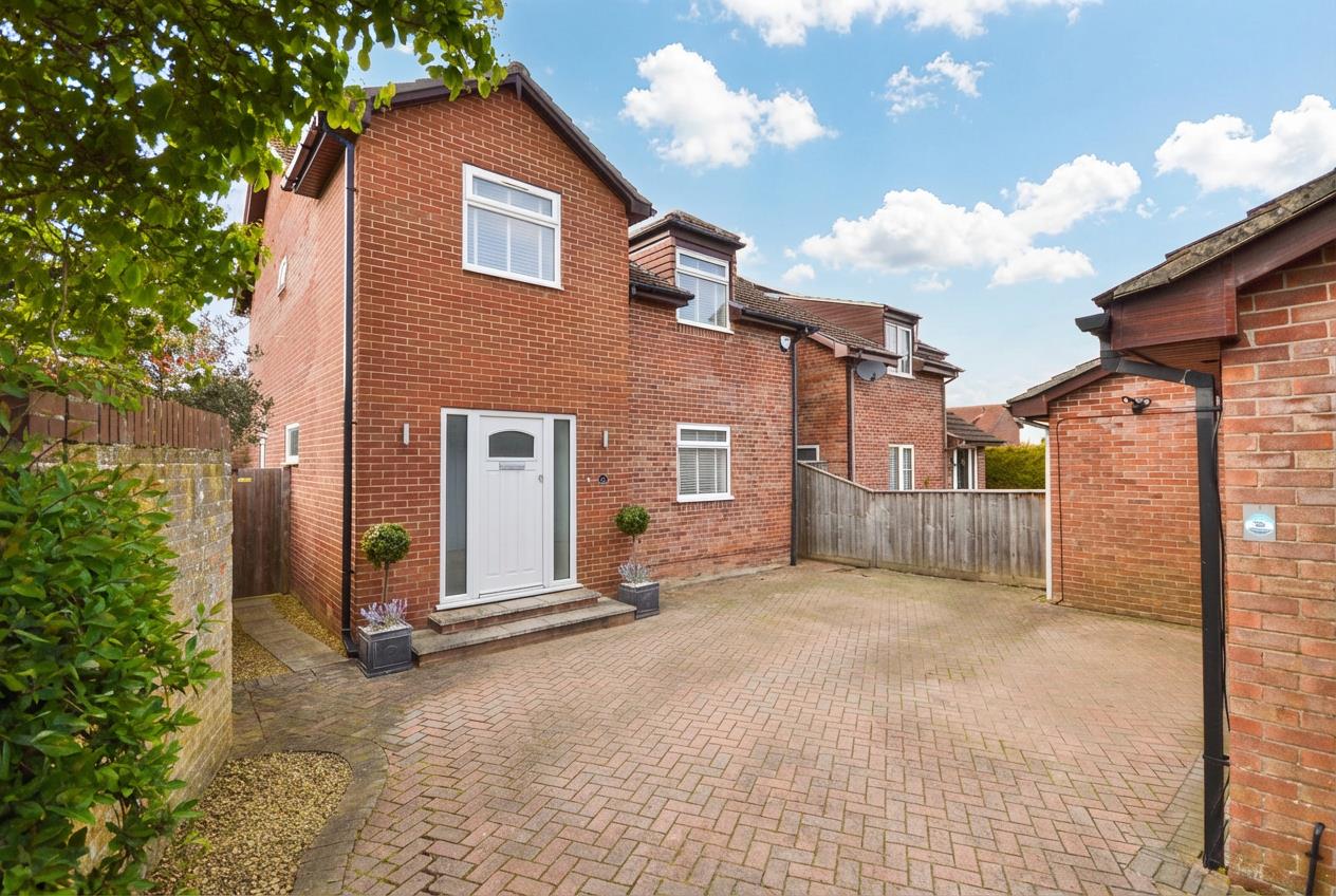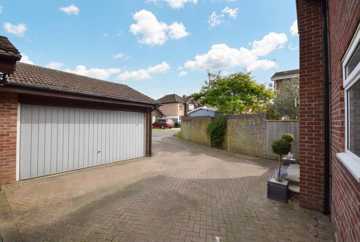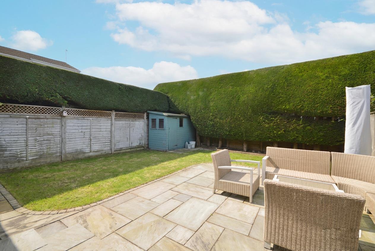 The front of the property has a block paved driveway providing off street parking for a couple of vehicles and access to the double garage. The reasonably private rear garden benefits from being westerly facing, immediately adjacent to the property is a patio area ideal for al fresco dining, the remainder is laid mainly to lawn. A garden shed is included in the sale. The rear garden is enclosed by well manicured clipped evergreen hedging and wood panel fencing with trellis and featheredge fencing. There is pedestrian access to both sides of the property.