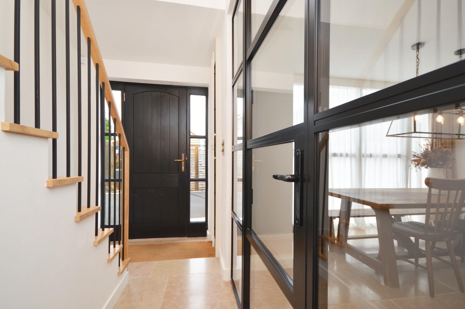 Entrance via bespoke handmade front door with glazed side panels intoHallway