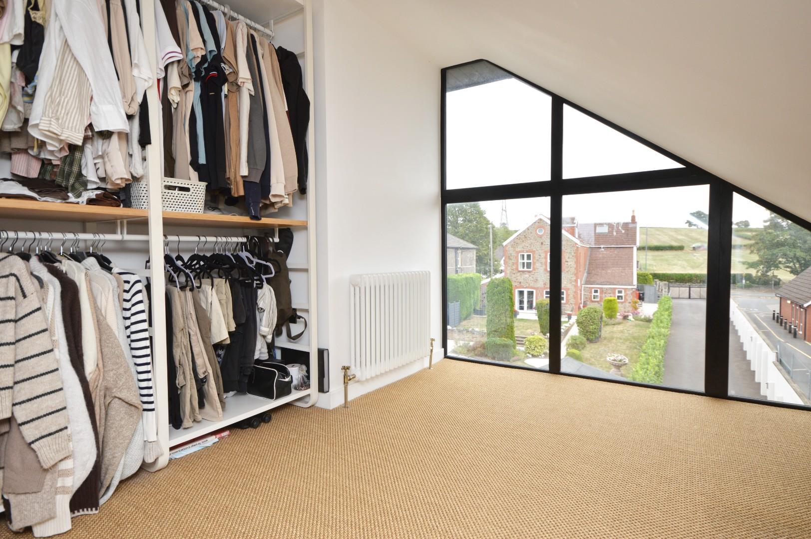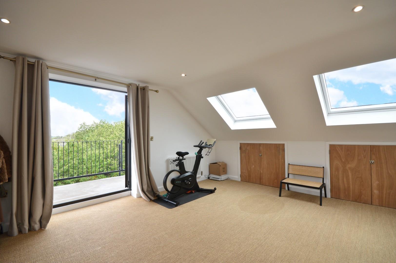 Double glazed double doors to balcony, two large Velux windows, double glazed windows to front aspect, access to eaves storage, two period style radiators, opening to