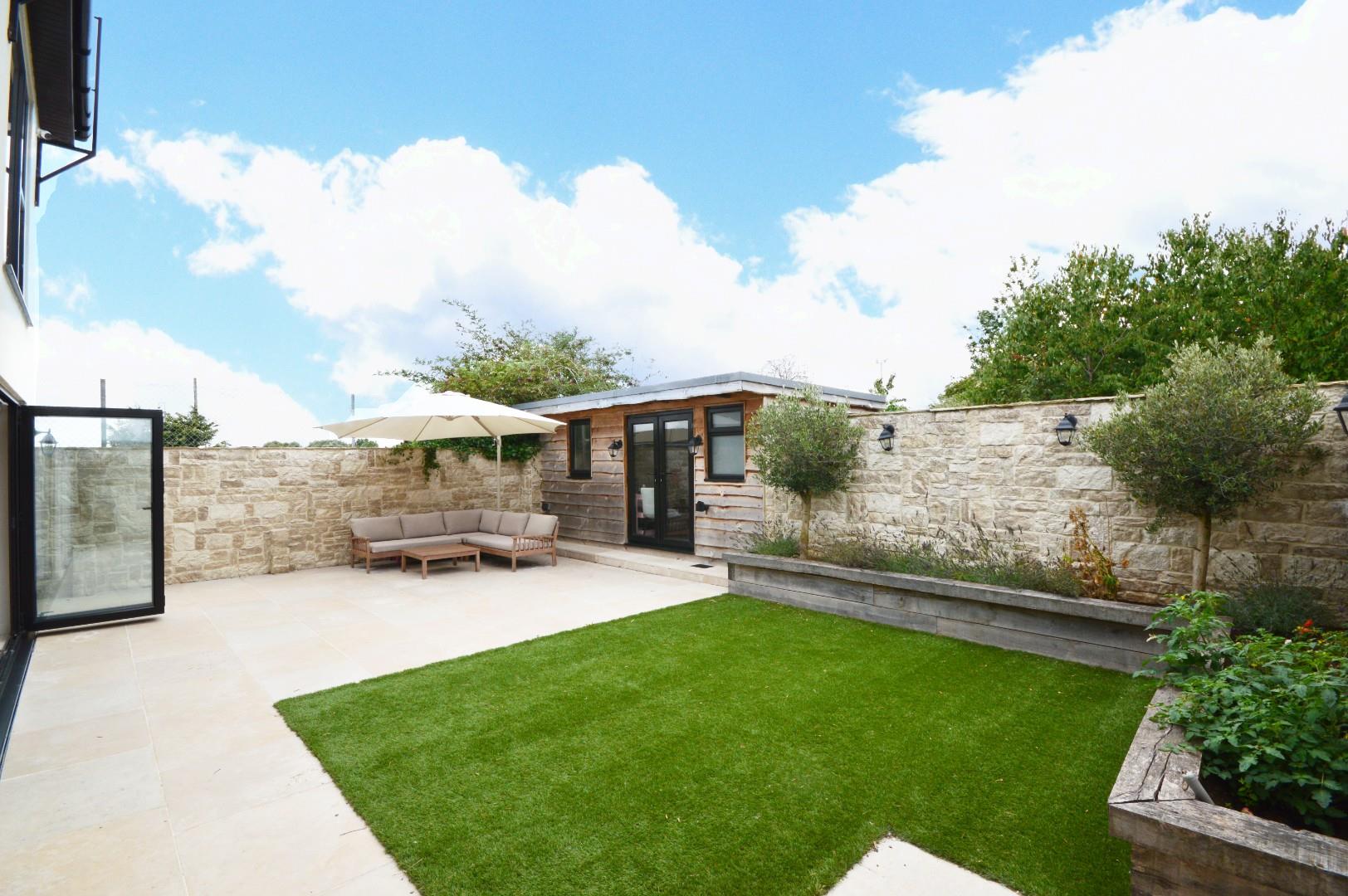 The low maintenance rear garden is fully enclosed by stone walling with Porcenia Sahara stone wall cladding, access is via a wooden pedestrian gate. There is an area laid to artificial lawn and raised planted borders containing a mixture of lavender, ground cover and a couple of standard olive trees, a natural limestone patio area is ideal for al fresco dining and entertaining with an outdoor power point and tap.