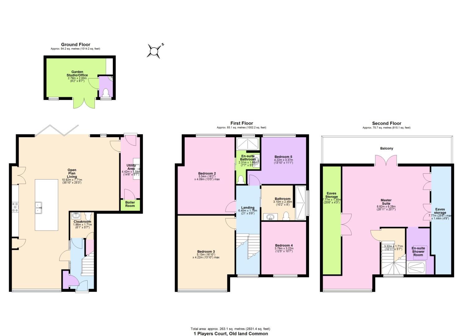 Nestled in the desirable Players Court of Oldland Common, this stunning five-bedroom detached house offers an exceptional living experience. Built in 2021, this executive-style home spans an impressive 2,831 square feet and is arranged over three thoughtfully designed floors, ensuring ample space for family living.Upon entering, you are greeted by a spacious reception room that flows seamlessly into an open-plan living area, perfect for both entertaining and everyday family life. The ground floor boasts exquisite Mandarin Stone limestone tiling, complemented by the comfort of underfloor heating, creating a warm and inviting atmosphere. The modern black Critial double glazed windows (bespoke made by a Welsh glazing company) not only enhance the aesthetic appeal but also provide excellent insulation and natural light. A state of the art mesh WiFi system with full strength signal all over the property including outbuilding add to the security of this lovely home.The heart of the home features bi-folding doors that open onto a beautifully landscaped rear patio , ideal for alfresco dining or simply enjoying the outdoors. The property includes a master suite on the second floor, complete with en suite facilities and a private balcony, offering a serene retreat. Additionally, bedroom two also benefits from its own en suite, providing convenience for family or guests.Accessed via electric double gates, this exclusive development comprises three properties of similar build, ensuring privacy and security. Located close to local amenities and transport links, this home perfectly balances modern living with accessibility.In summary, this remarkable property is a true gem, offering high-quality finishes and a spacious layout, making it an ideal choice for families seeking a contemporary lifestyle in a sought-after location.Key features