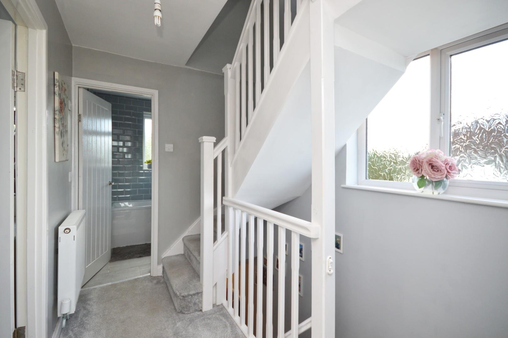 Stairs rising to first floor landing, double radiator, doors to
