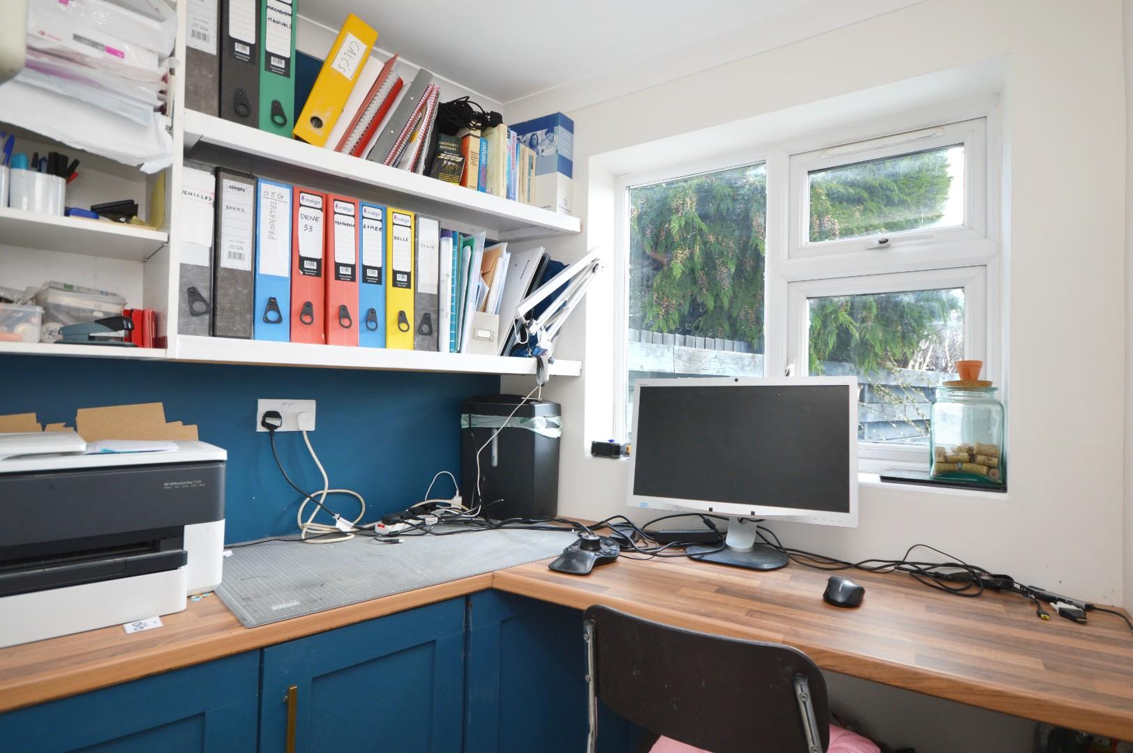 uPVC double glazed window to rear aspect, fitted shelving, fitted worksurface.