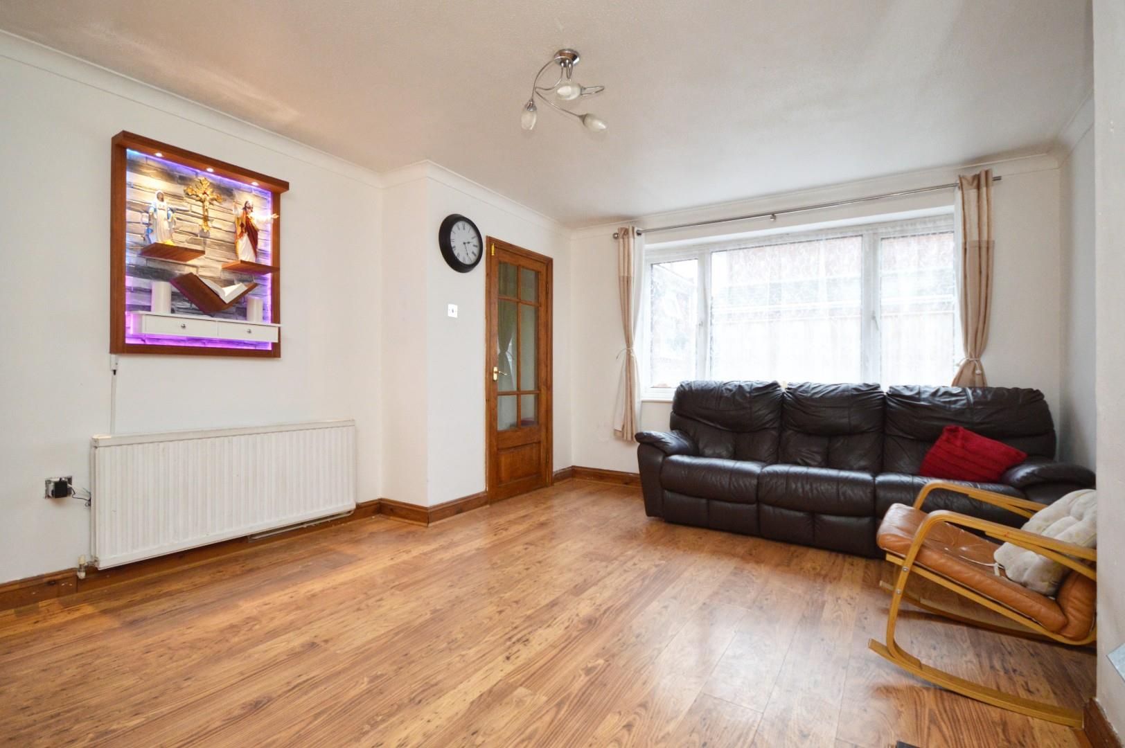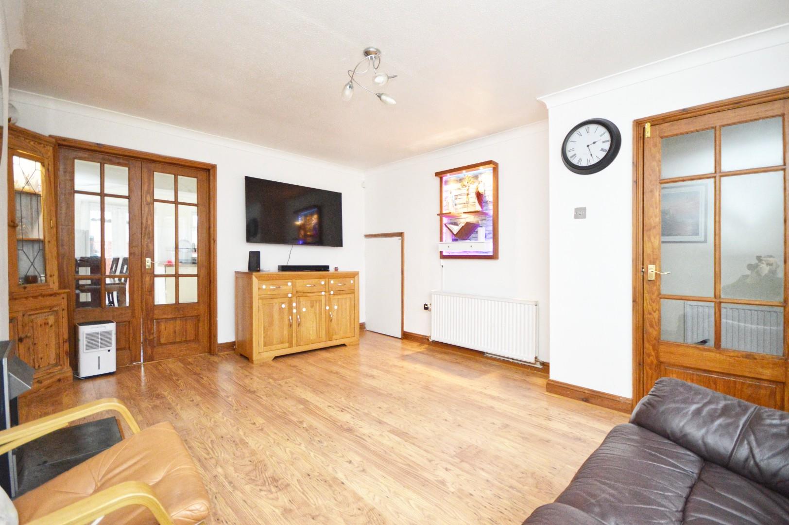 uPVC double glazed window to front aspect, double radiator, coal effect electric fire, wood effect flooring, internal double doors to