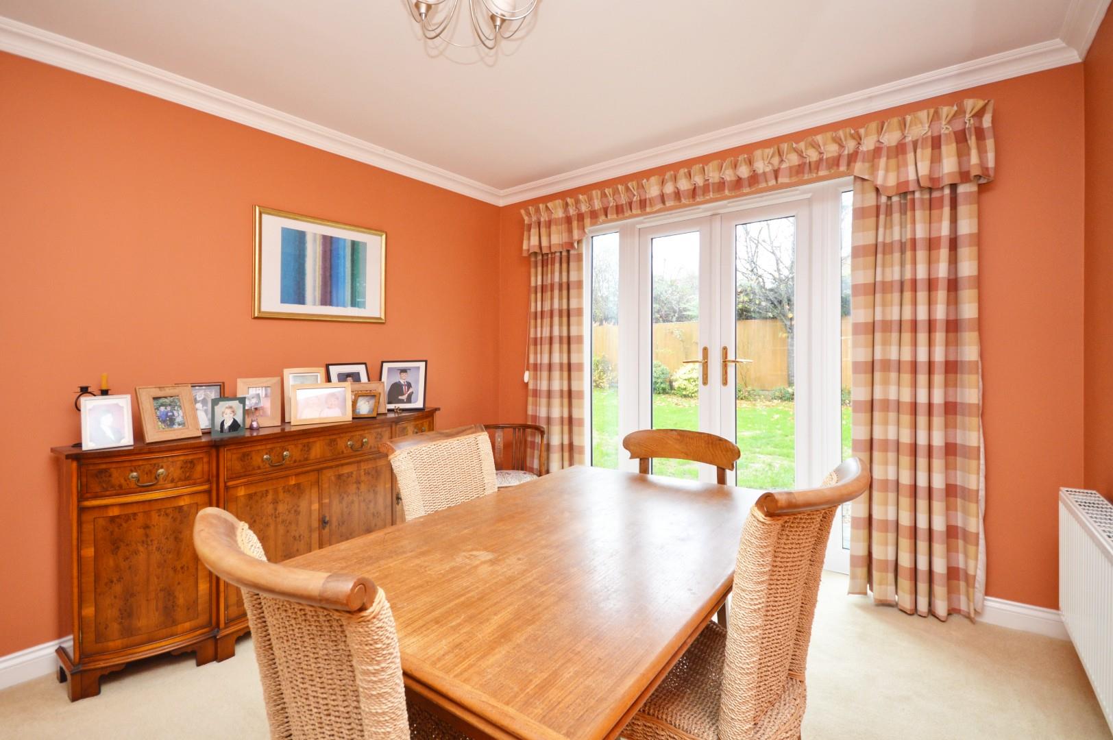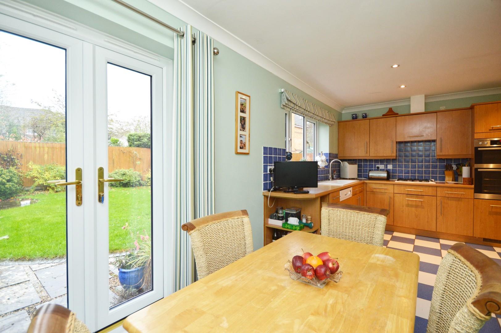 The front of the property has a driveway providing off street parking for two vehicles and access to the double garage. The remainder is laid mainly to lawn. The south facing rear garden has a patio area immediately adjacent to the property ideal for al fresco dining, the remainder is laid mainly to lawn with a selection of mature plants and shrubs. There is a further patio area at the back of the garden. The rear garden is fully enclosed by wood panel fencing.